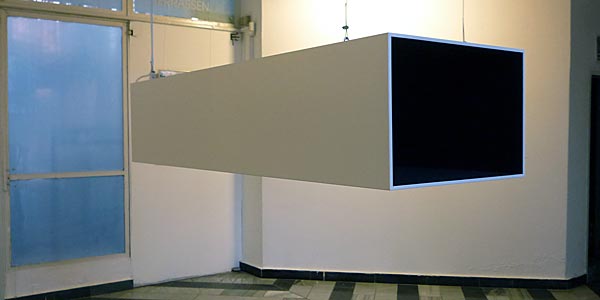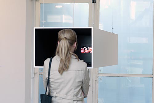 "The Hong Kong Showcase Box" is a viewing box suspended in space. The built-in flatscreen monitor shows a loop of “The Hong Kong Showcase” film. Viewing boxes (so-called Zograscopes) were traditionally devices for producing optical illusions and/or intensifying visual impressions. Because the image is set in a dark field and is illuminated from within the flatscreen, the sense of space of significantly magnified. The sound is also more intense, due to the box’s special acoustics. The installation thus amplifies an intentionally sensual space-time effect: “The world is everything that is the case.” (Ludwig Wittgenstein, Tractatus logico- philosophicus, Sentence 1). The Showcase: a Case Study, and the viewing box: a window on the cosmopolitanized world.