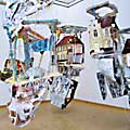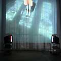 Dies ist eine in sich verschachtelte Raum-Video-Installation, Fotoaufnahmen einer Fensterszene wurden digital zu Raum- und Zeitcollagen nach bearbeitet, die in den Austellungsraum verpflanzt wurden, die Ausstellungssituation selbst wiederum abgefilmt ins Video integriert.